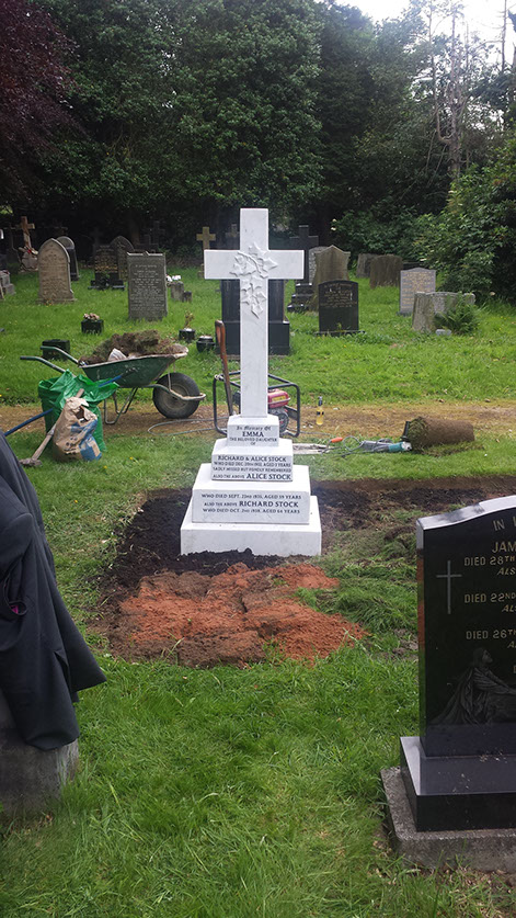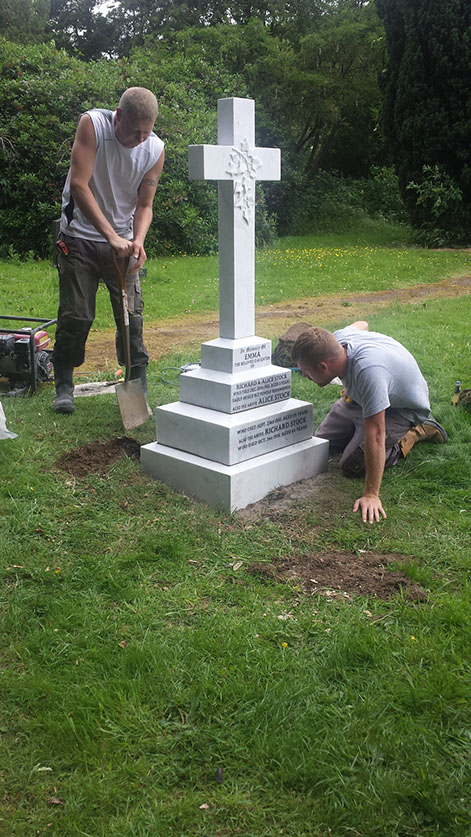 Due to advances in fixing technology the headstone base was no longer required, we fitted this headstone with dual NAMM anchors allowing us to fix it direct to the ground