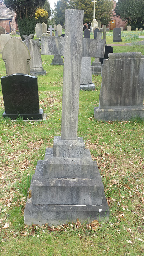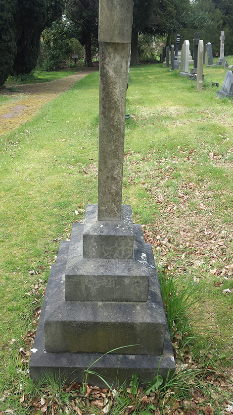 A side elevation of the stone showing it to be straight and true, & the grave area now levelled. The dark background showing how striking this century old memorial has become.