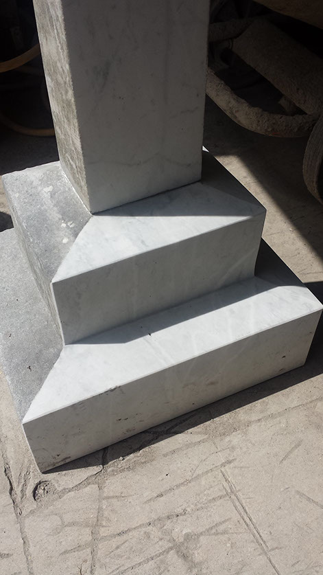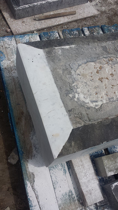 Picture of the lower base from the stone where we have initially just begun remove the surface of the marble to reveal the original beauty hidden behind its current exterior